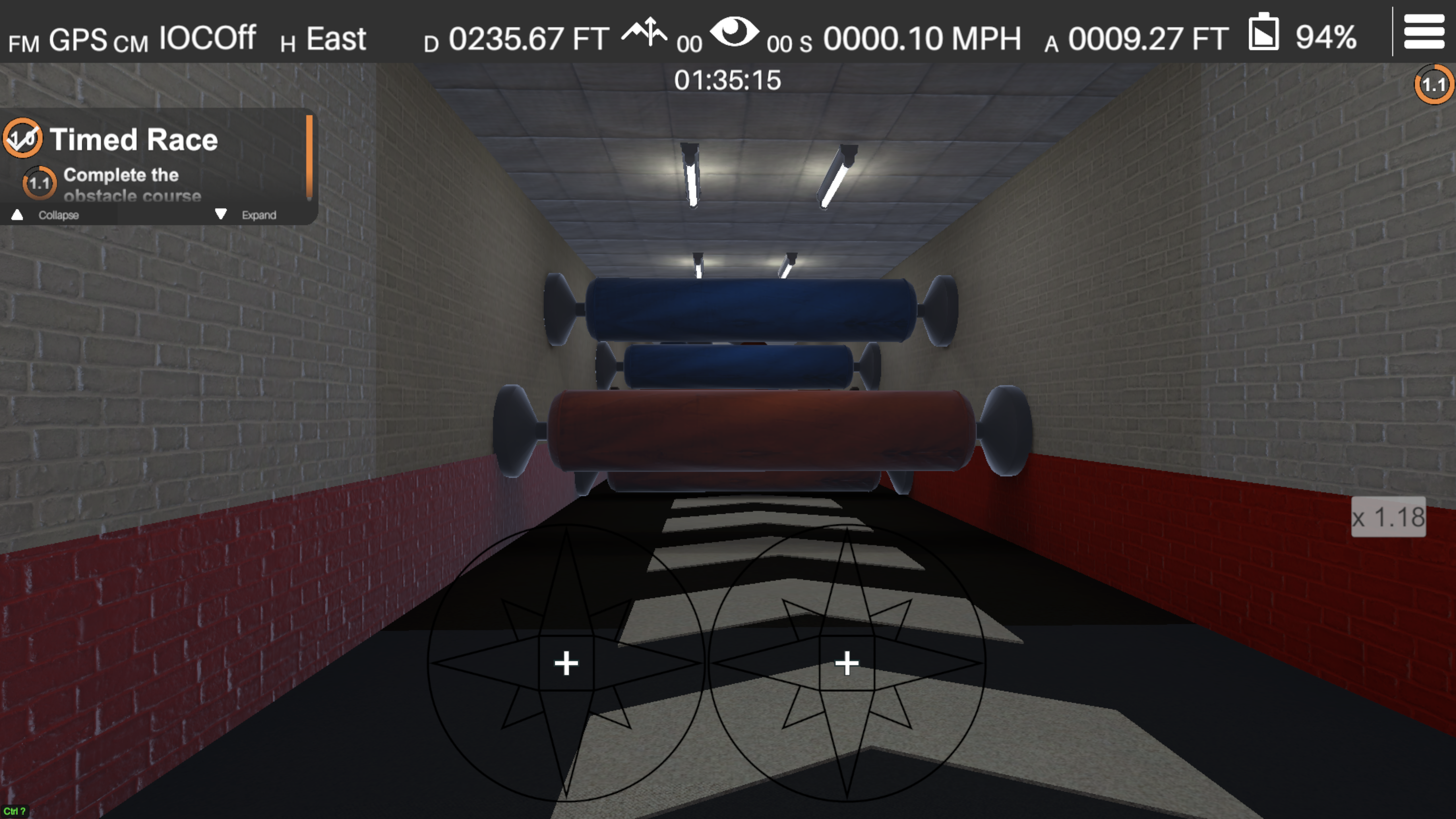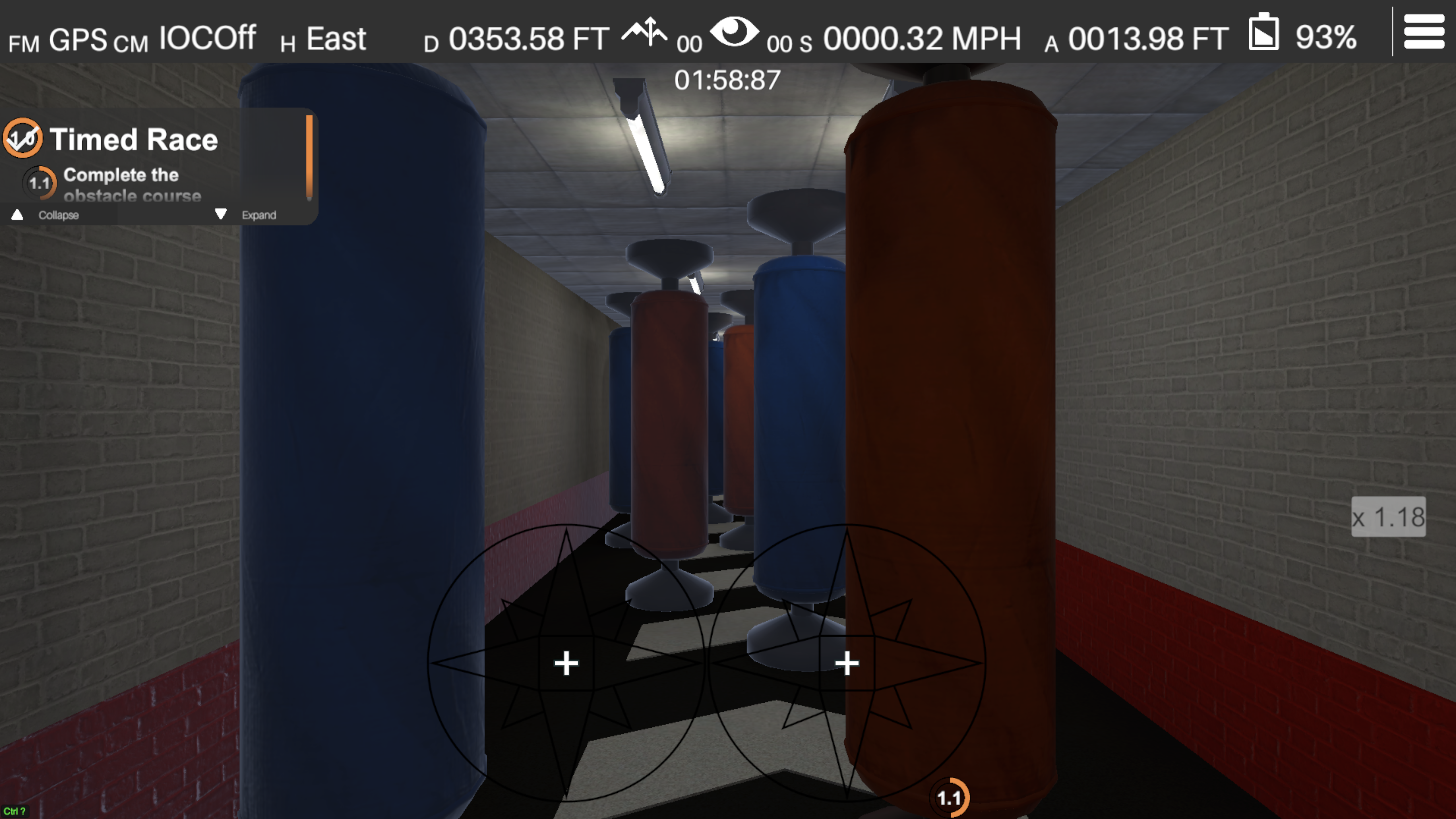 The Obstacle Course scenario is a time trial where operators pilot their drone through a tense, tightly-packed course.