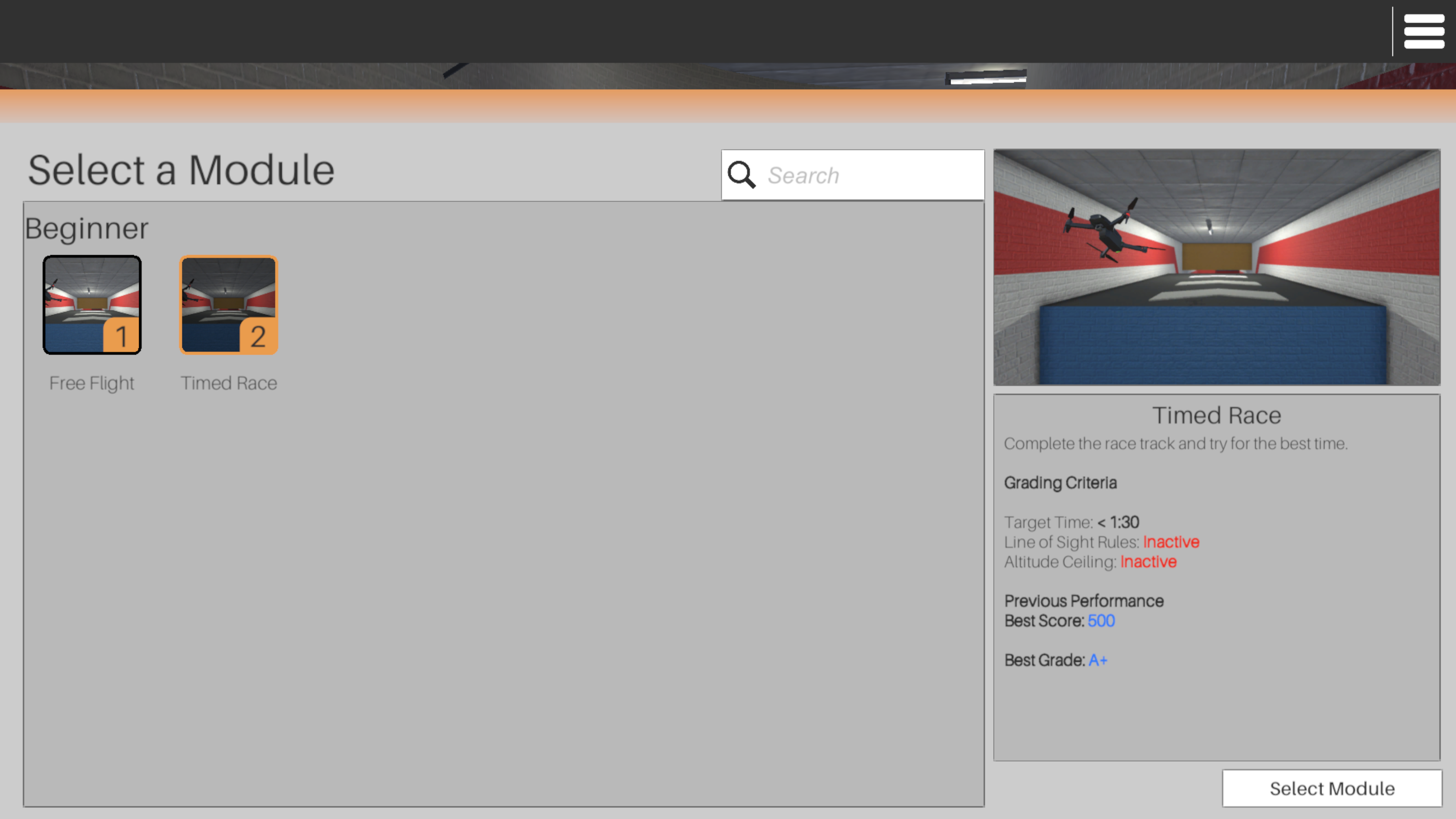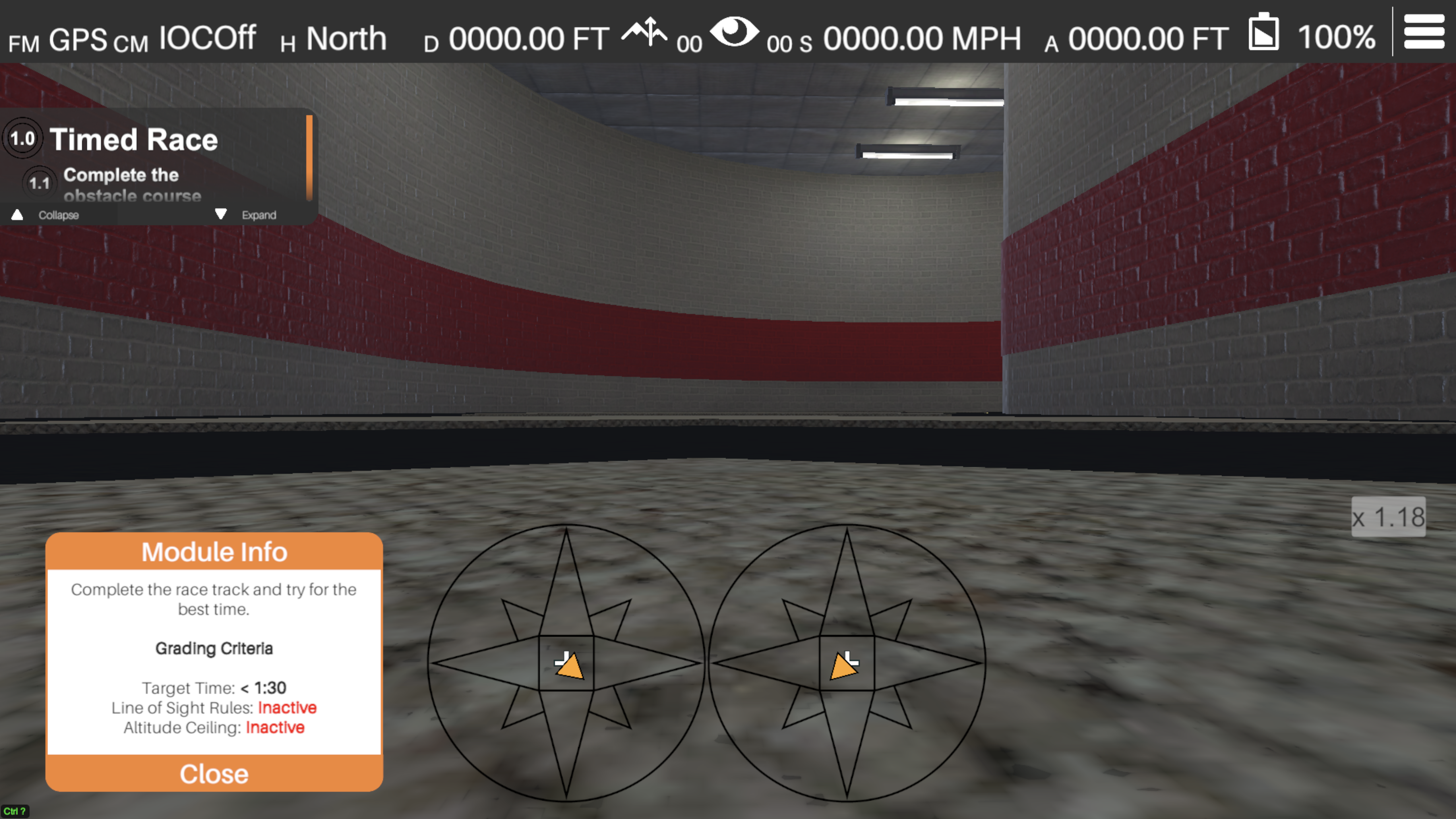 Complete the race track as quickly as possible! The entire module will be flown in first person perspective using the drone's camera.